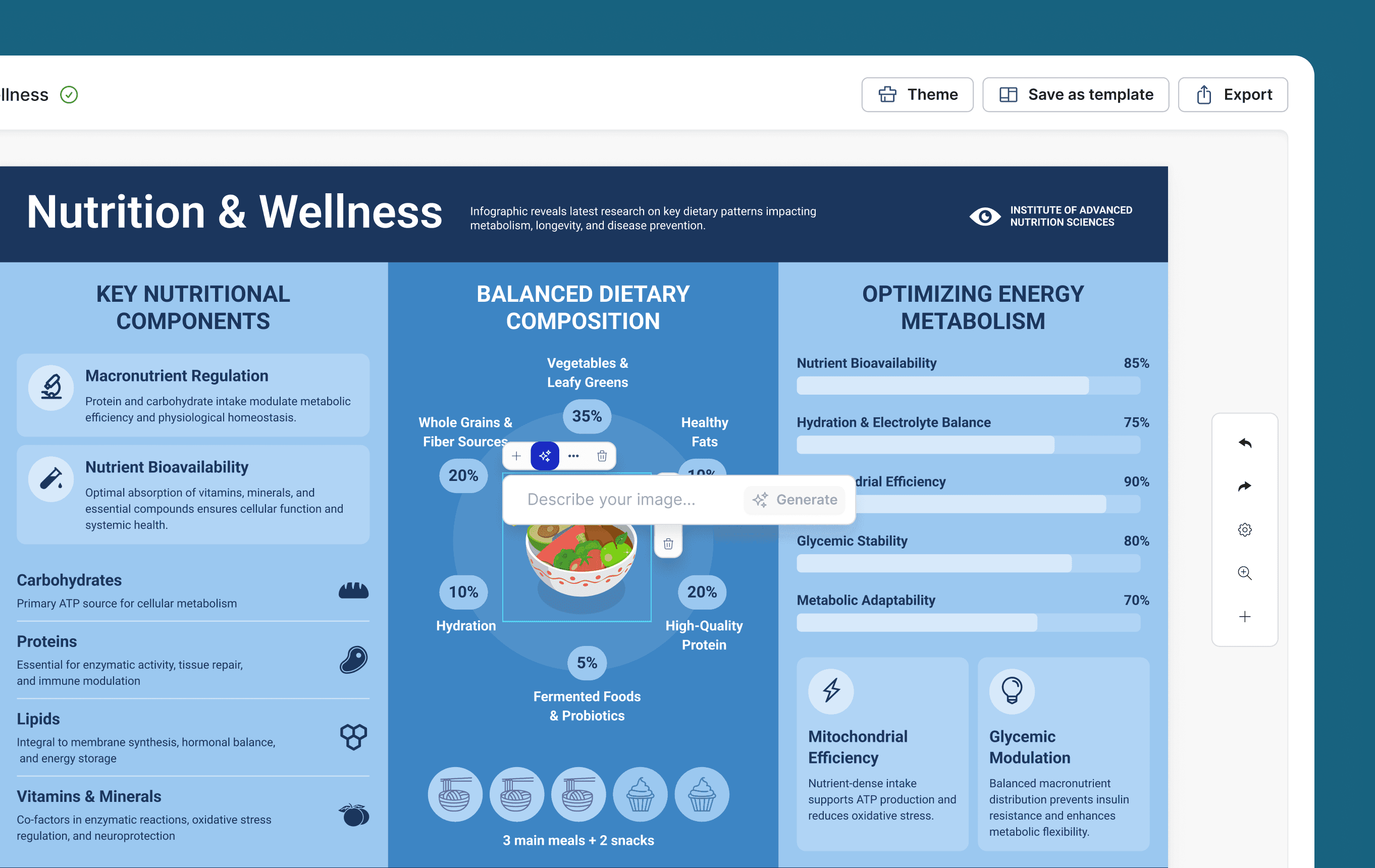 - Ready to publish: brand templates, correct units, readable labels, and export to DOCX/PPTX/PDF.