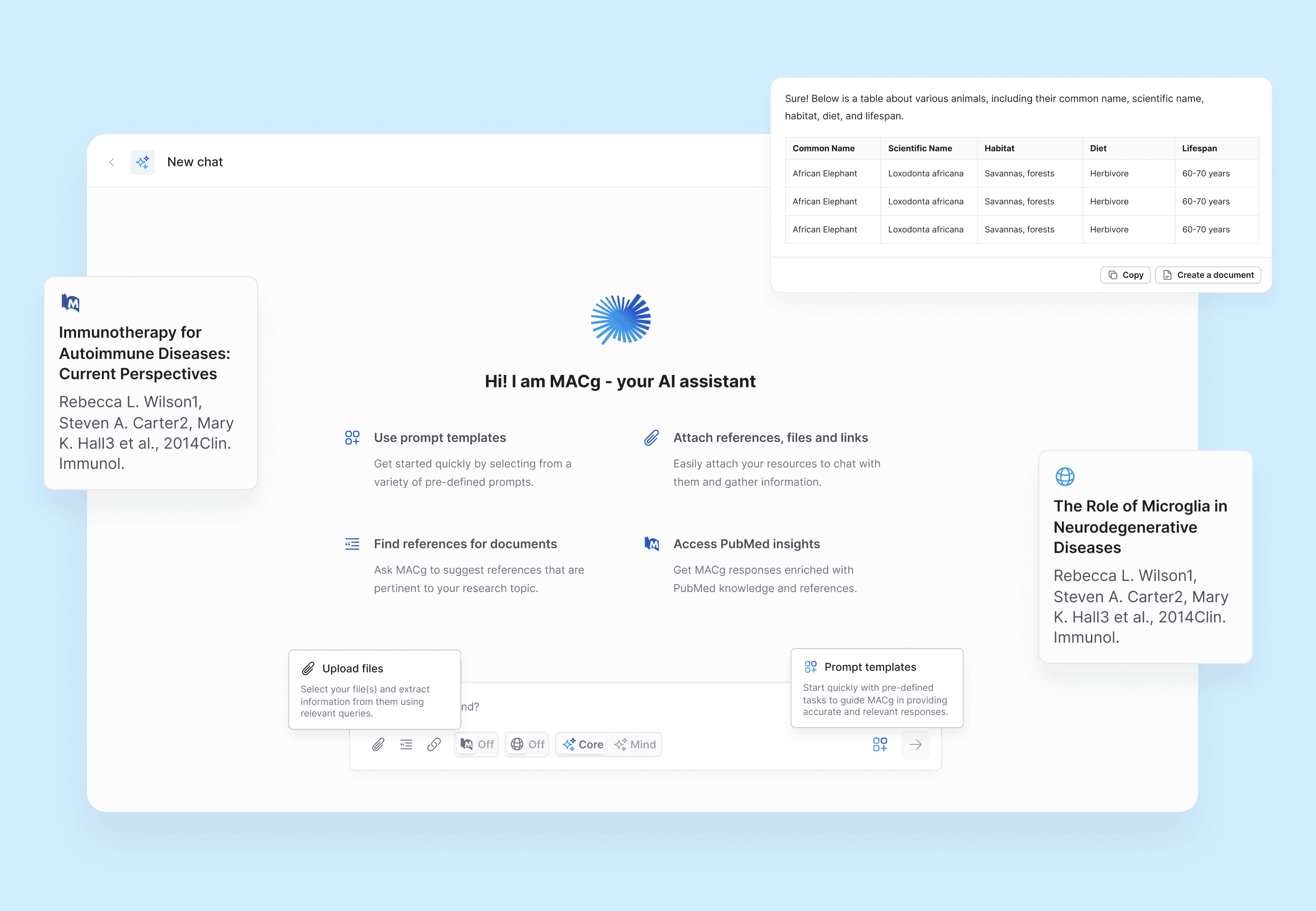- Combined with MACg's visualization tools (charts, images, diagrams, tables), it becomes a powerful literature analysis platform for clear data storytelling and evidence synthesis.