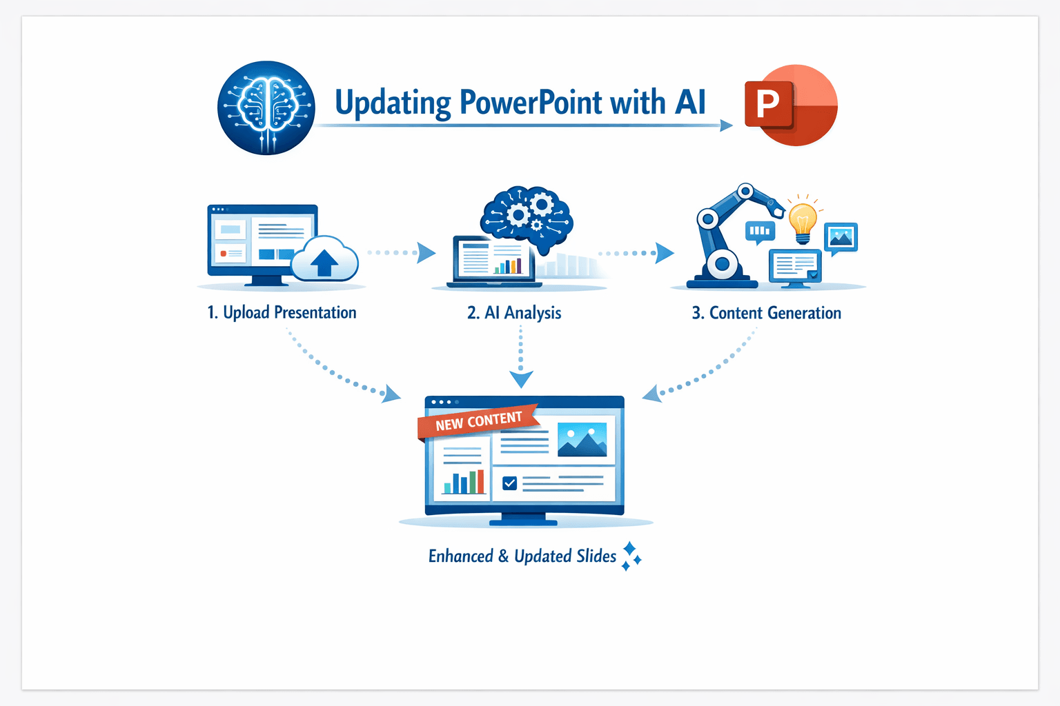 This approach combines the speed and structure of AI with the judgment and oversight of human experts, giving you clearer, more coherent slide updates with far less effort than traditional methods. You may need to adapt specific steps based on the features of the AI platform you are using, but the core workflow—generate new slides with AI, then integrate and polish in PowerPoint—is widely applicable.