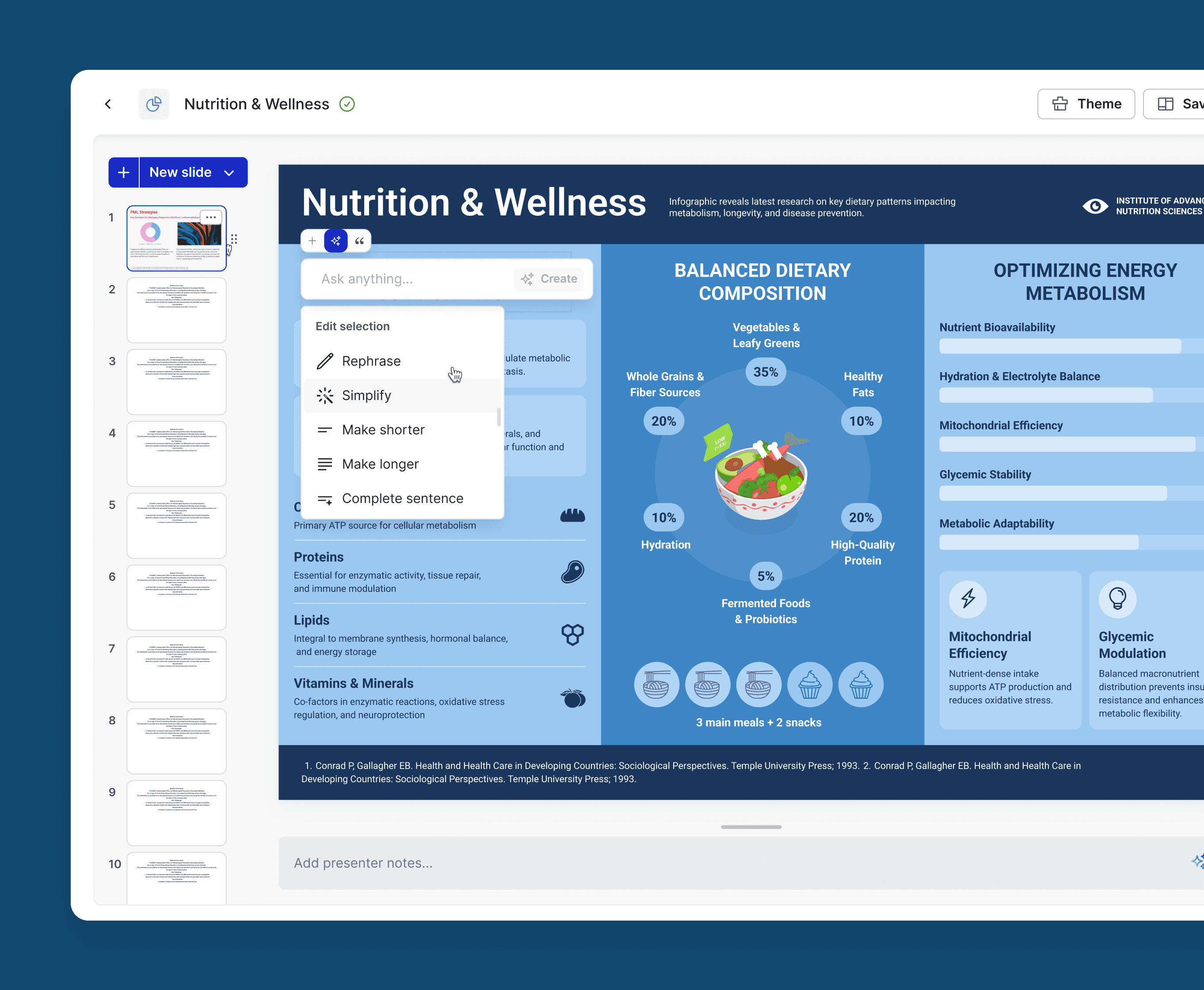Images: Insert images, including infographics, from chat or paste from your documents.