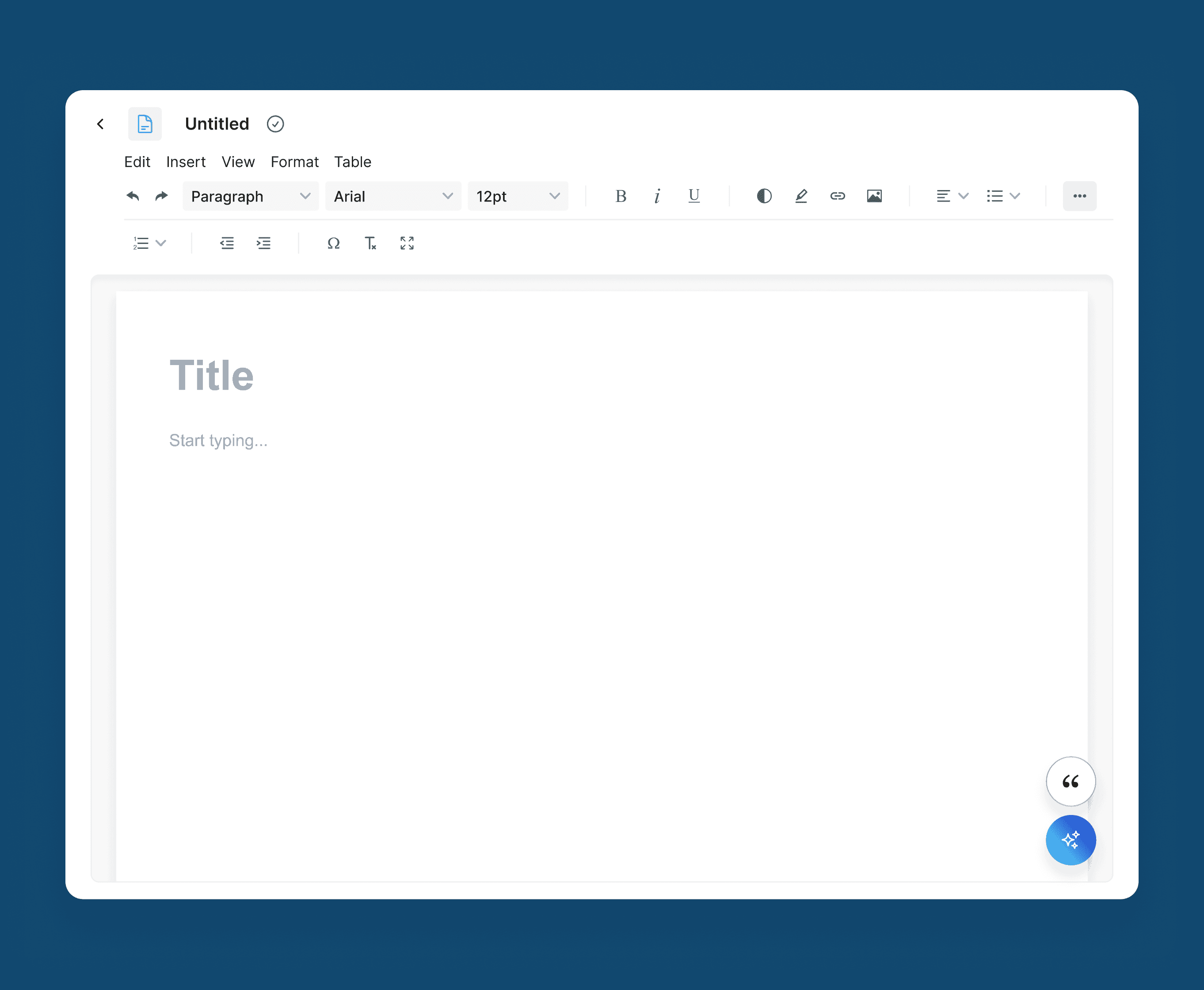 Text: Insert structured sections, copy and paste, rearrange sections, and refine with inline edits.
