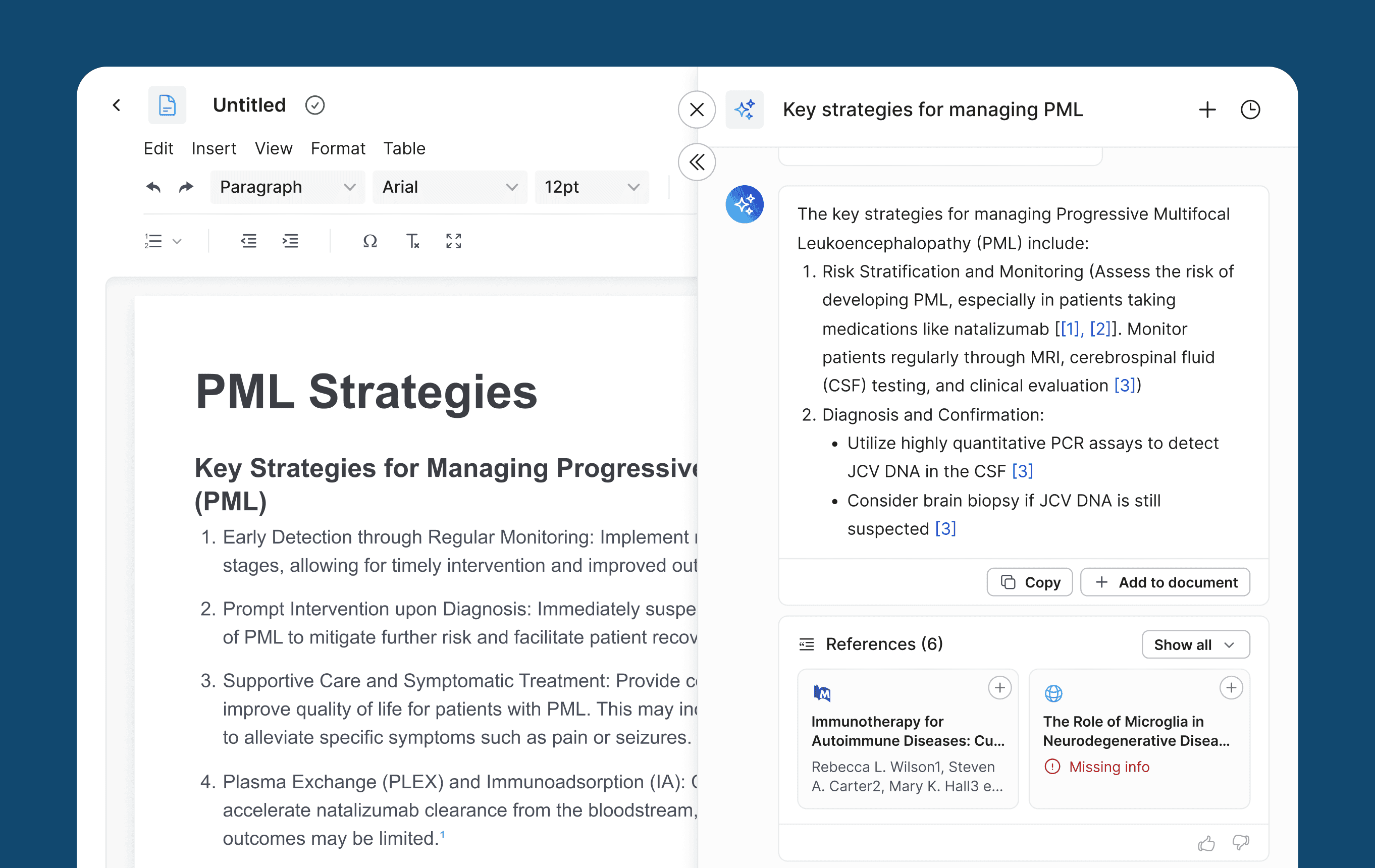 Ideal use cases: All content, including medical information letters, custom responses, manuscripts, journal club summaries, article summaries, SOPs, blogs, and more.